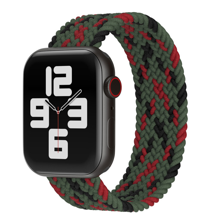 Gevlochten bandje voor Apple Watch 42/44/45 mm – Donkergroen Rood