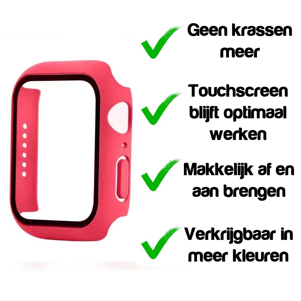 – 1x Hoesje + screenprotector geschikt voor Apple Watch 40mm Rood