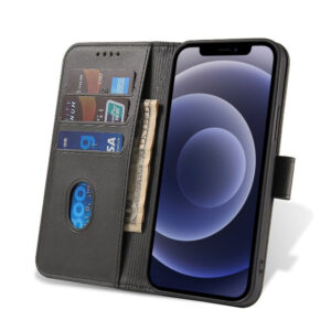iPhone 12/12 Pro leren hoesje met lipje – Zwart