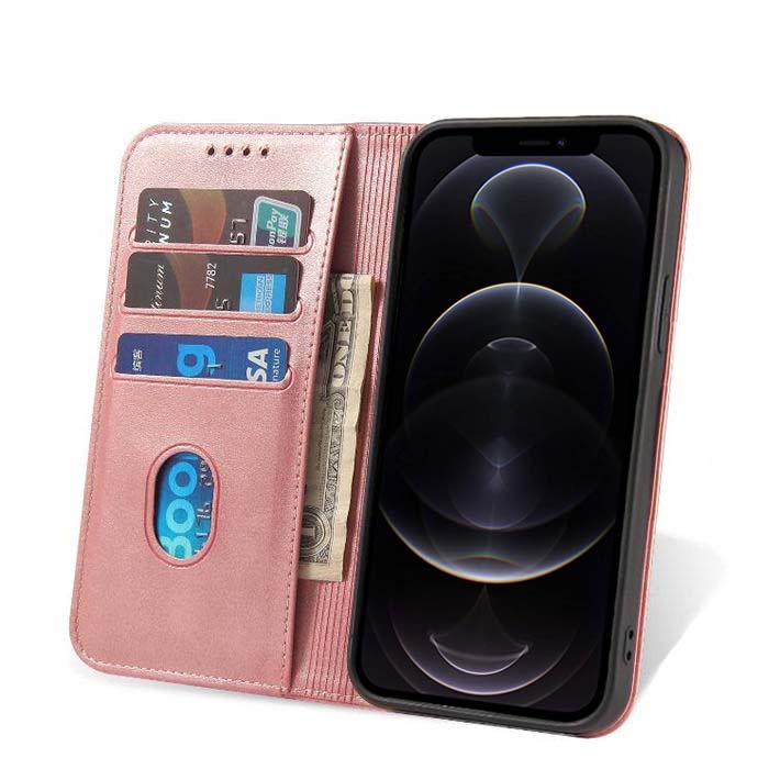 iPhone 12 Pro Max leren hoesje met magnetische sluiting – Roze