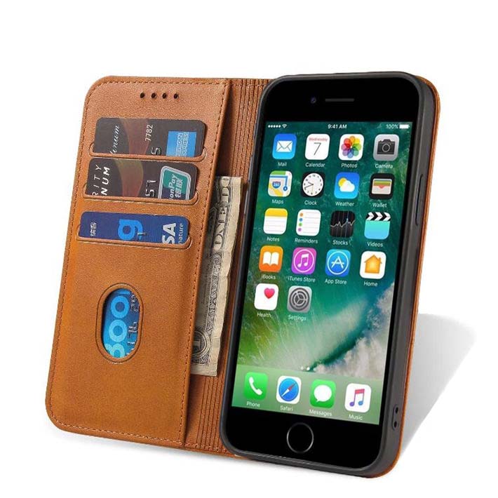 iPhone 6/6s leren hoesje met magnetische sluiting – Bruin