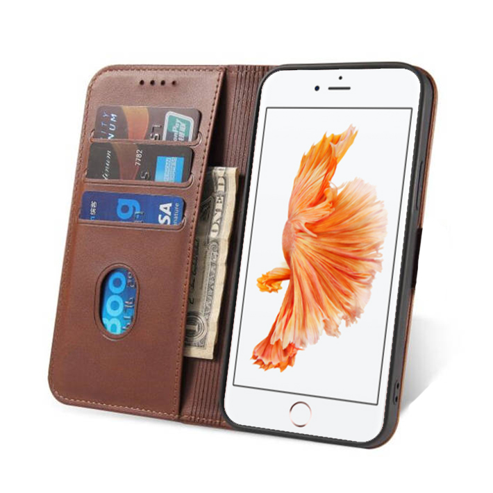 iPhone 6/6s leren hoesje met magnetische sluiting – Donkerbruin
