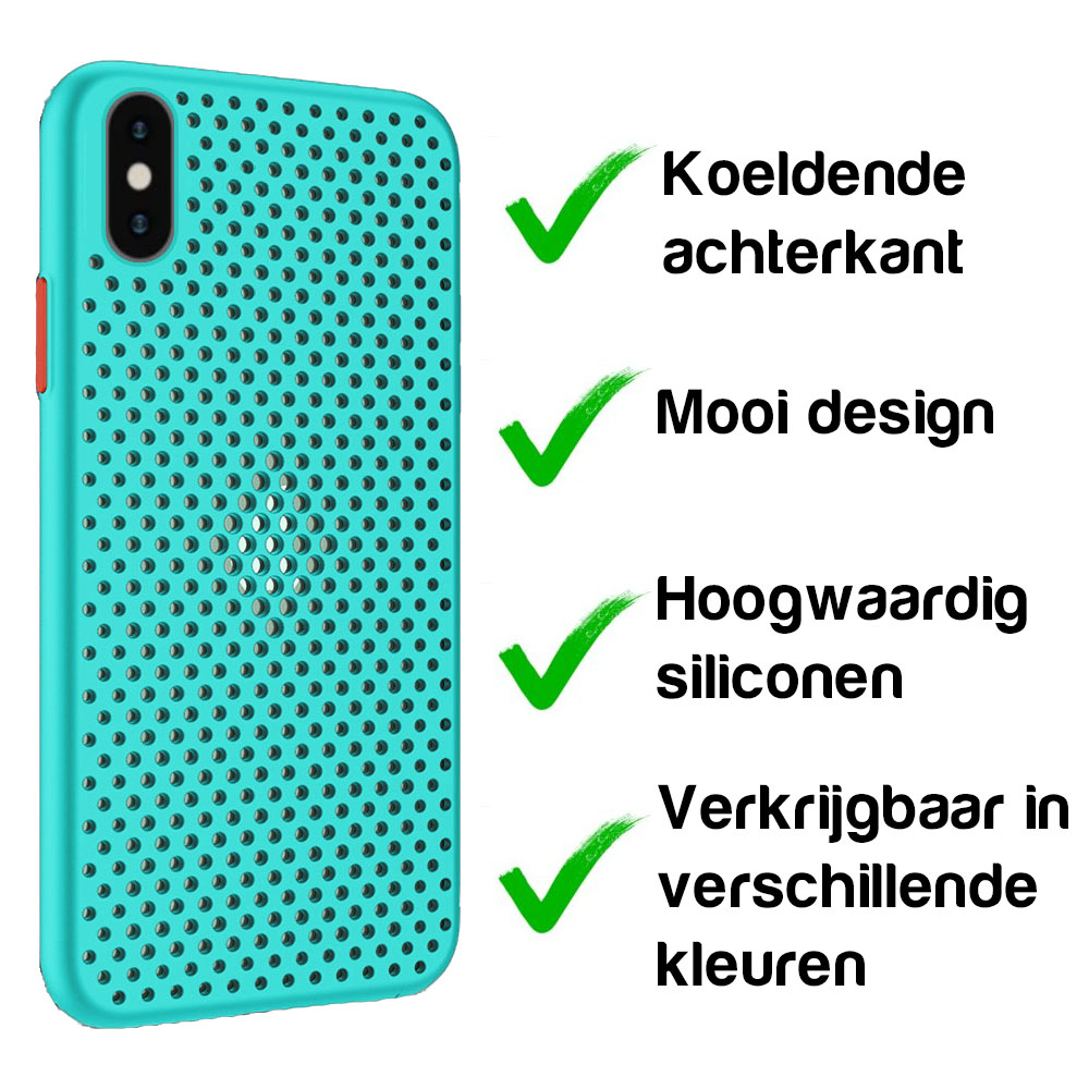 Word jouw iPhone X of Xs ook zo warm in de zomer? Met dit koelend hoesje kan jouw telefoon sneller de warmte kwijt door de gaatjes in de achterkant. Niet alleen heel praktisch, maar ook nog eens heel mooi. Uiteraard kan dit hoesje ook bescherming bieden tegen val en stootschade. Dit hoesje is een meerdere kleuren te verkrijgen dus kijk snel welke kleur jou het meest aanspreekt.