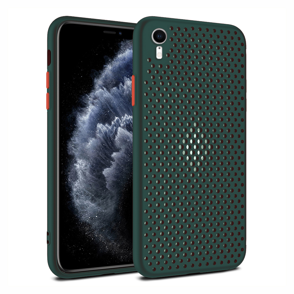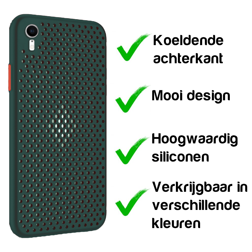 – 1x iPhone Xr koelend hoesje met gaatjes donkergroen